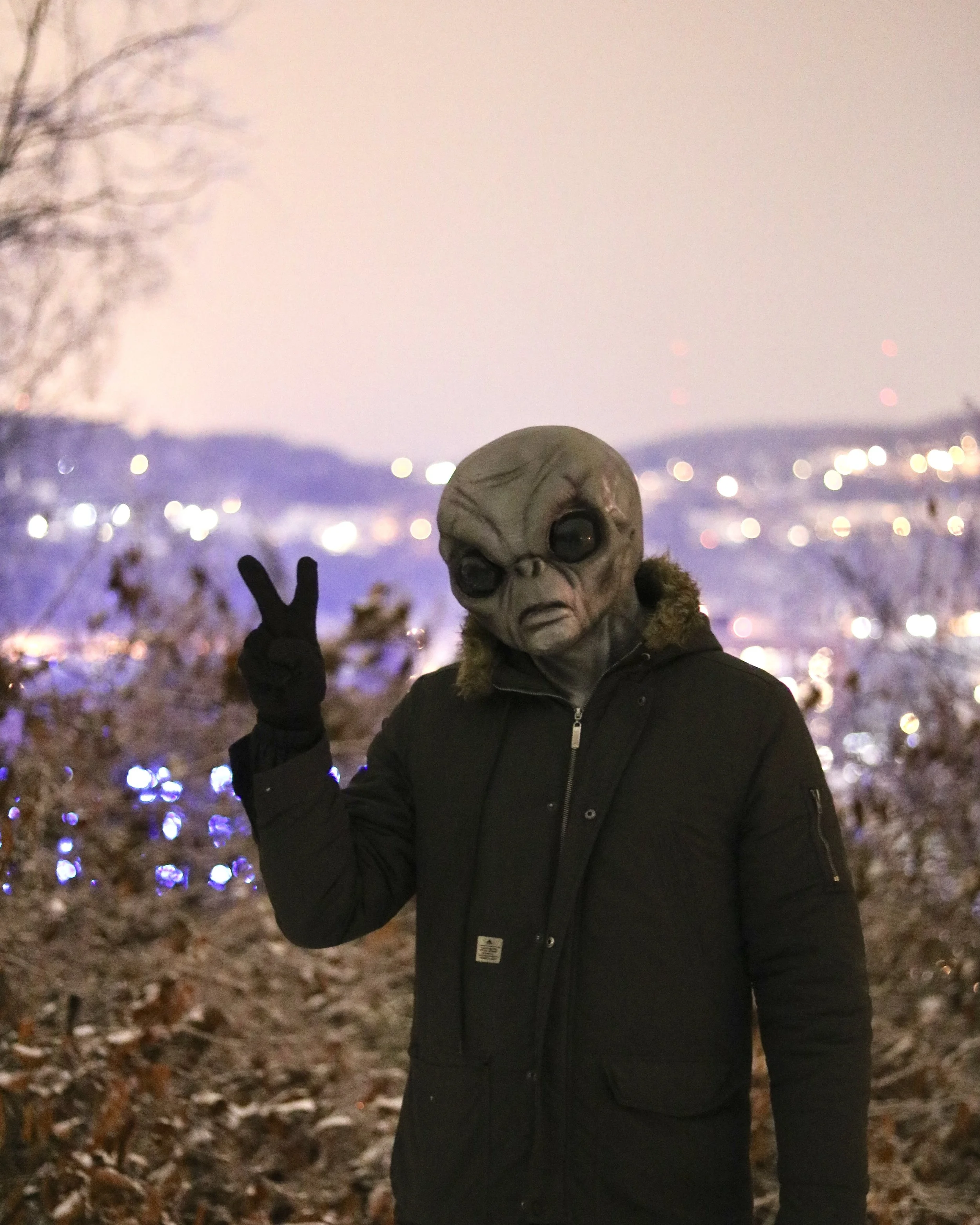 Ghoul 3 is my third set of photos I took of my latex skull mask. This is the third mask from the skull mold, painted green and black. My friend Twiz is modeling it in his back yard with various props.